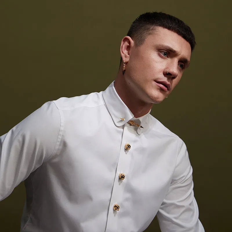 Letar du efter ett unikt sätt att lyfta din stil? Skull Button Cover Set är det perfekta tillbehöret för att sätta en kant på vilken outfit som helst. Dessa intrikat designade fodral har ett slående vampyrskallemotiv som förvandlar vanliga knappar till djärva uttalanden. Perfekt för dem som älskar att sticka ut, dessa knappfodral ger en sofistikerad touch till dina skräddarsydda plagg, vilket gör dig till centrum för uppmärksamheten var du än går.