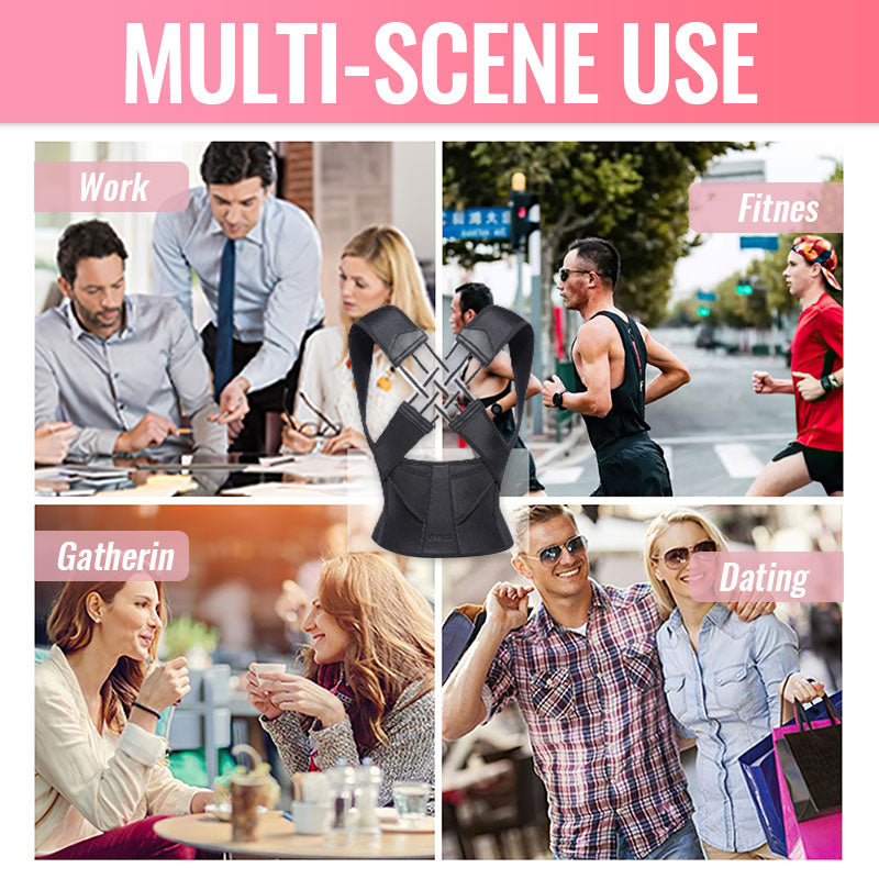 Mångsidig och dold: Med sin eleganta design kan du diskret bära hängslen under kläderna, vilket gör att du kan behålla korrekt hållning oavsett tillfälle.