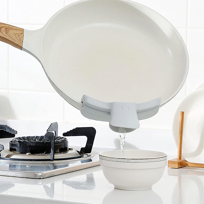 - Denna deflektor fäster tätt på de flesta kastruller, skålar eller stekpannor för enkel och smidig silning, snabbt och enkelt. Hällpipen hjälper till att hälla vatten, soppa, olja från skålar, kastruller, grytor för att stoppa rörigt spill.