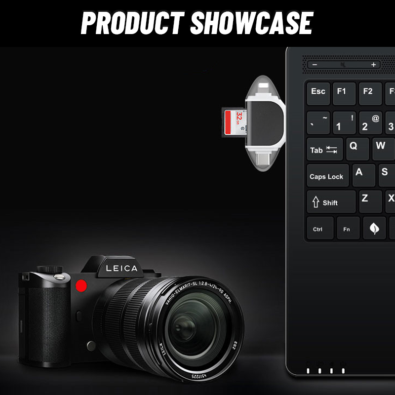 Anpassar sig till alla enheter! Kortläsaren stöder USB-, Android- och Type-C-gränssnitt, vilket ger en mångsidig lösning för en mängd olika enheter. Oavsett om det är en bärbar dator, Android-telefon eller Type-C-aktiverad enhet, njut av sömlös kompatibilitet.
