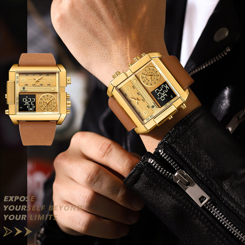 Elektronisk kvartsklocka för män med dubbel skärm
