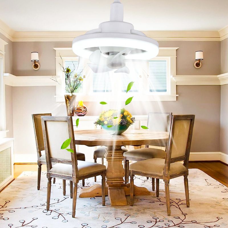 🔸 Material: plast🔸 Arbetsspänning: 86-265V🔸 Fläktens effekt: 13,5 W🔸 Ljusstyrka: 48W🔸 Storlek: 26cm🔸 Färg: vit🔸 Gränssnitt för lamphållare: E27