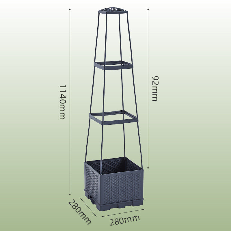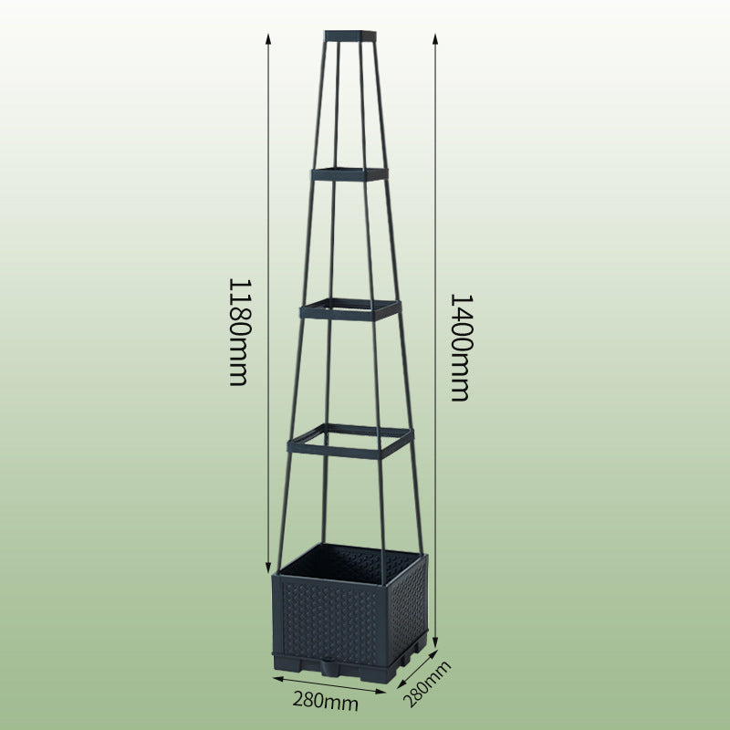 STABIL TURNSTRUKTUR - Den obeliskformade ramen ger ett robust stöd på flera nivåer. Den förhindrar vindskador och främjar vertikal tillväxt, vilket garanterar att dina vinstockar eller blommor förblir säkra och vackert exponerade medan de mognar.