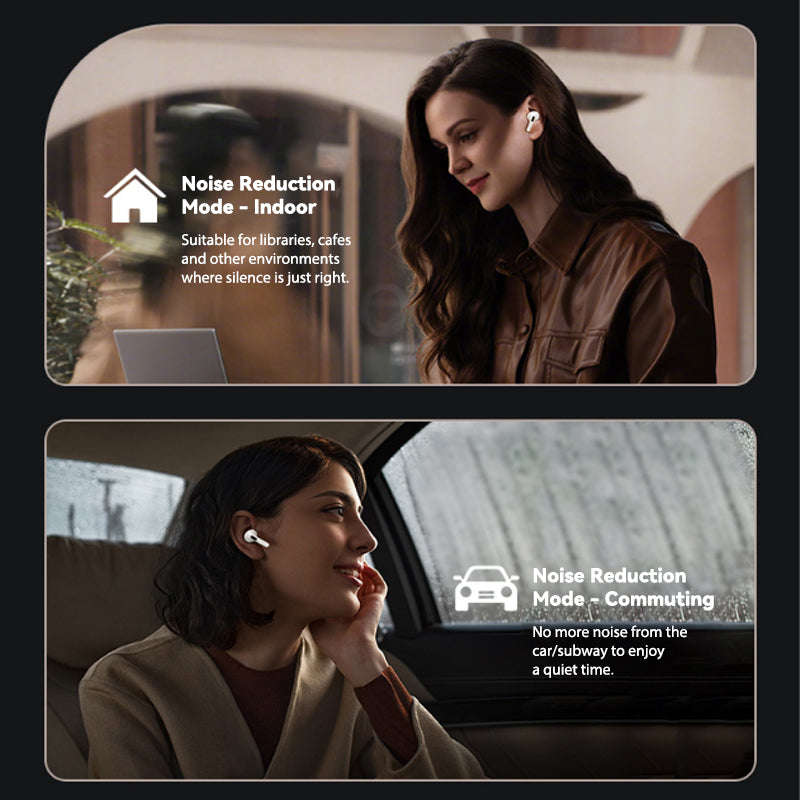 - ENC Noise Cancelling: Active Noise Cancellation-tekniken hjälper till att minska omgivande brus och ger dig en uppslukande lyssningsupplevelse. Oavsett om du befinner dig i en bullrig miljö eller en lugn plats, njut av ljudkvalitet utan distraktion.