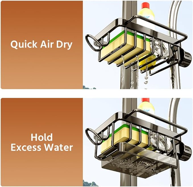 KransvamphÄllaren kan anvÀndas inte bara för diskbÀnken utan ocksÄ för badrummet för att förvara ditt schampo, tvÄl och andra föremÄl, bli av med skrÀp och göra diskbÀnken och bÀnkskivorna mer organiserade. Denna kranhÄllare Àr mycket lÀmplig för ditt kök och badrum.