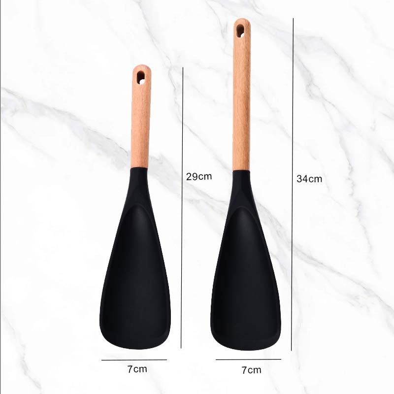 Skonsam mot köksredskap: De slÀta kanterna pÄ vÄr trÀsked i silikon Àr skonsamma mot dina non-stick-krukor, stekpannor och bakformar och förhindrar repor och skador vid matlagning