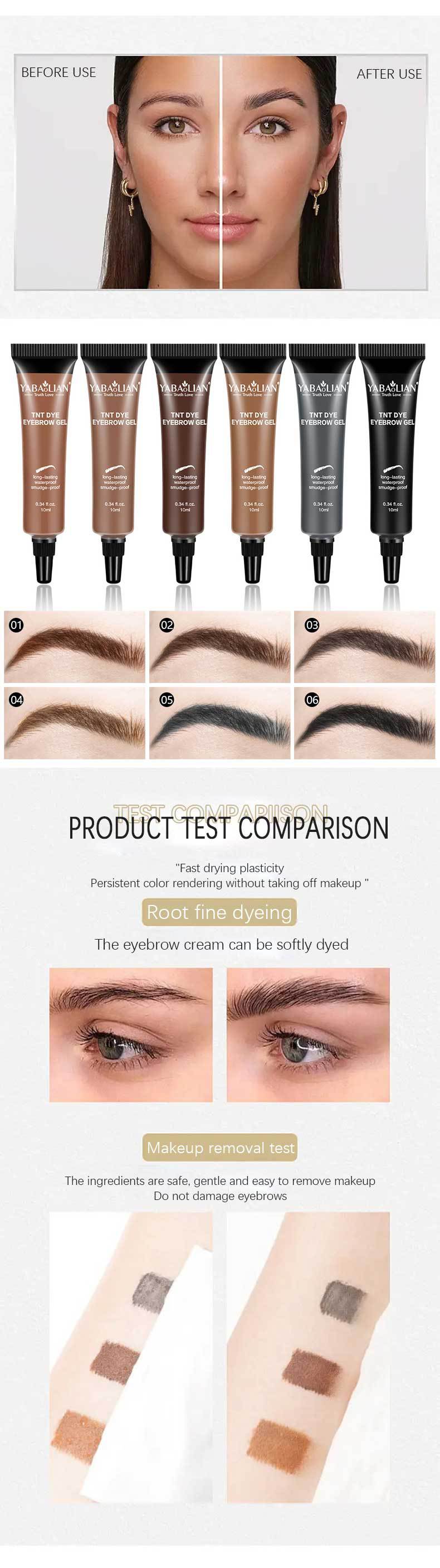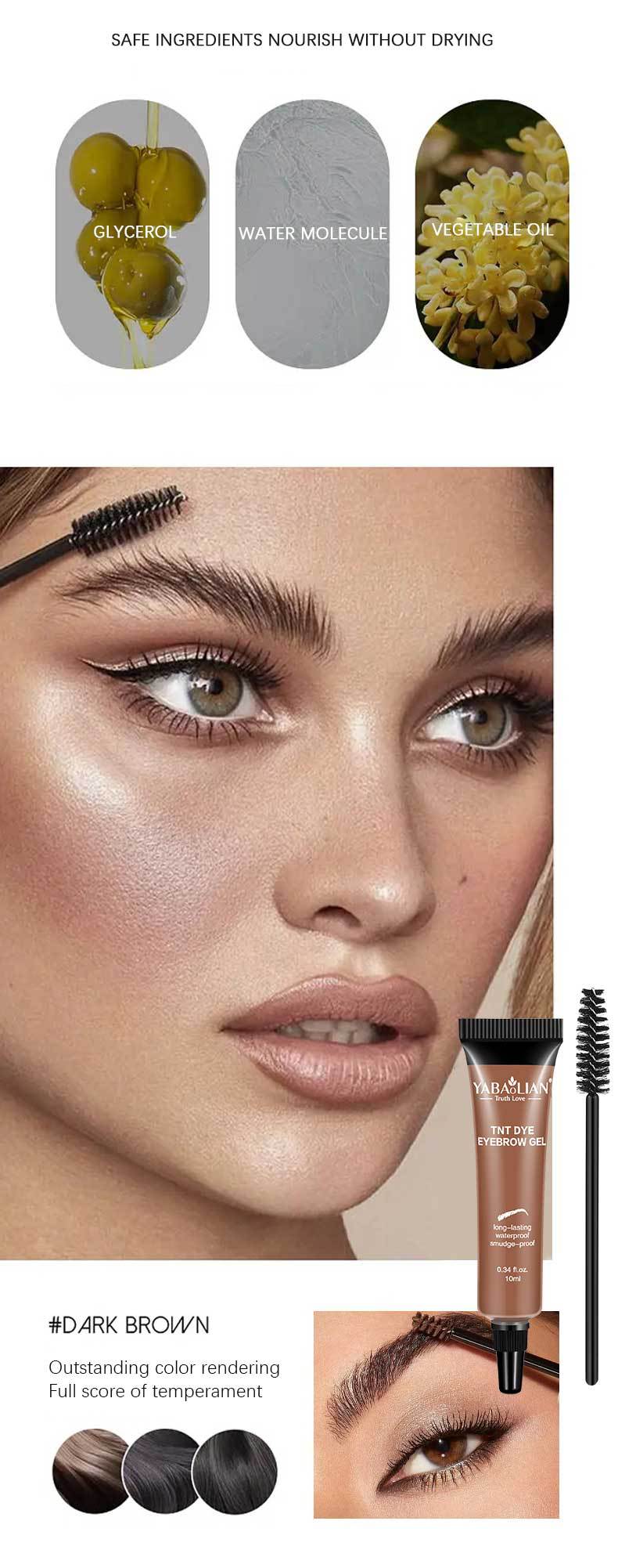 Långvarig, vattenfast och smetfri flytande ögonbrynsgel/färg