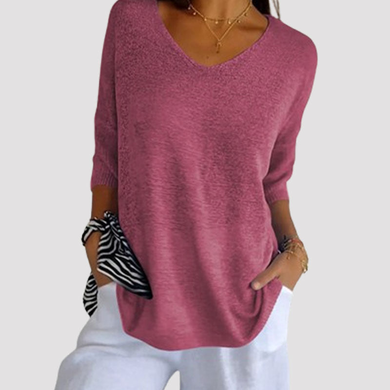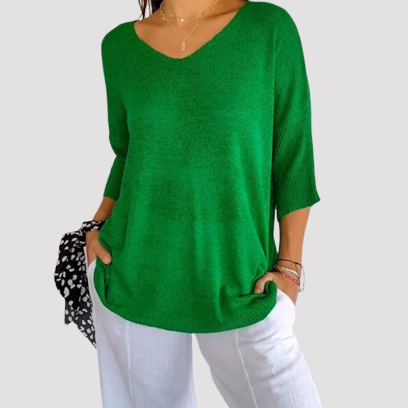 EnfÀrgad stickad topp med v-ringning