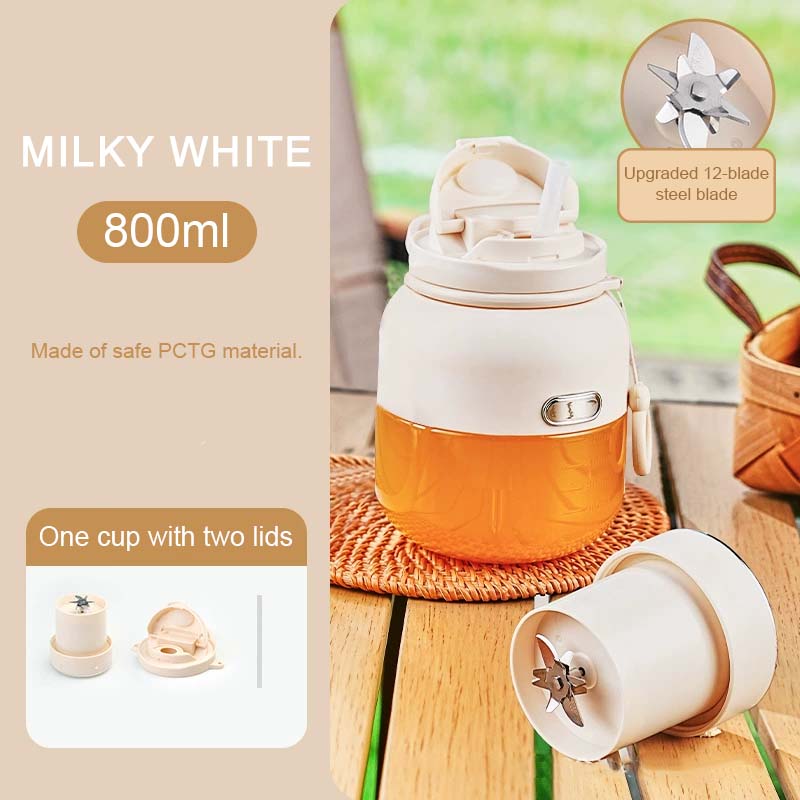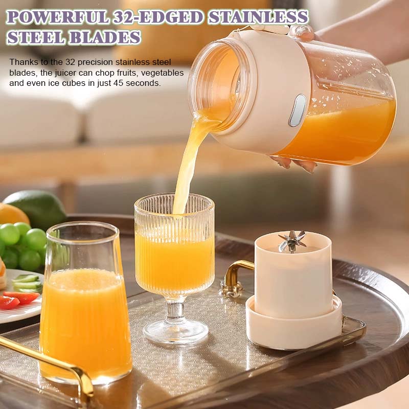 Batteriet med hög kapacitet garanterar en lång driftstid så att du kan njuta av din favoritjuice var som helst och när som helst. Perfekt för resan!