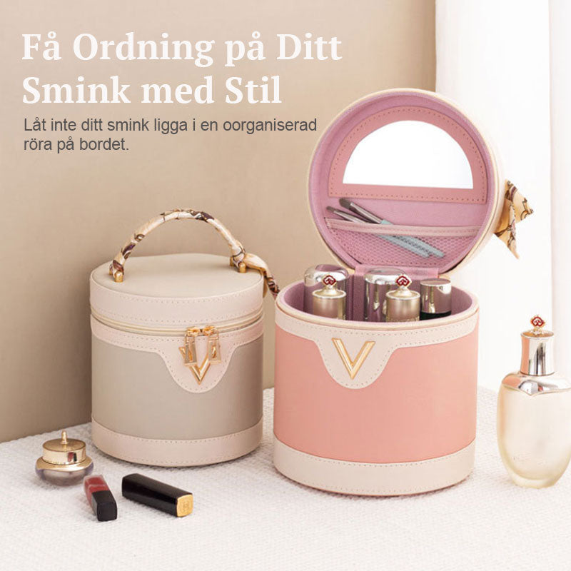 Den eleganta designen, tillsammans med praktiska funktioner som en inbyggd spegel och vattentätt material, gör denna väska till ett måste för varje skönhetsentusiast. 👜✨