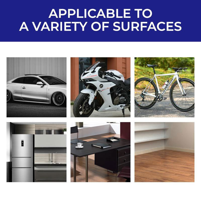 - 【Gäller för olika ytor】: Den kan användas för att reparera olika repor och färgfall på bilar, motorcyklar, cyklar, kylskåp, dörrar, bord, golv etc.