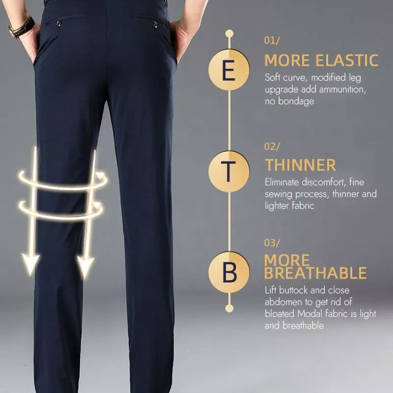 En expanderbar midja garanterar en perfekt passform i dessa byxor med klassisk passform med platt front.
