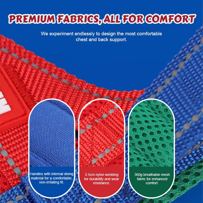 Den breddade bröst- och ryggkonstruktionen fördelar trycket jÀmnt, vilket minskar belastningen och förhindrar obehag. Perfekt för energiska husdjur som Àlskar att utforska utan grÀnser.