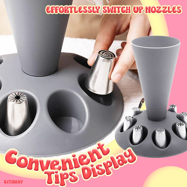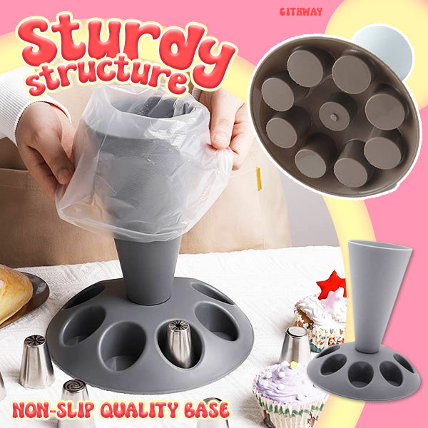 Ha en hjälpande hand när du dekorerar tårtan med denna spritspåse och bakmunstyckeshållare!