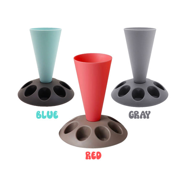En unik bakhjälp som är sakkunnigt konstruerad för att hålla din tårtpåse samt för att lagra upp till 8 dekorationstips samtidigt. Det gör att du kan frigöra båda händerna för att enkelt överföra glasyren eller annan blandning inuti spritspåsen utan att röra på sig i en bris. Detta baktillbehör låter dig också organisera dina nödvändiga munstycken på ett tillgängligt ställe och enkelt växla upp när som helst du behöver. Inga bekymmer eftersom frostingmunstyckeshållaren har 8 individuella slitsar för att hålla alla munstycken från att röra varandra för att upprätthålla maximal hygien. Dessutom hjälper det till och med så att du fritt kan lämna din fyllda spritspåse ifred när som helst för att hålla händerna för andra uppgifter för maximal bakningsmanövrerbarhet. Gör det till ett utmärkt verktyg för alla dina olika tårtdekoreringsprojekt och håller ditt bakområde fläckfritt.
