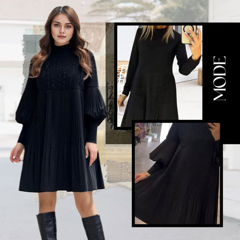 2025 Ny design✨Damklänning med ståkrage och lanternärm i plusstorlek🌈👗