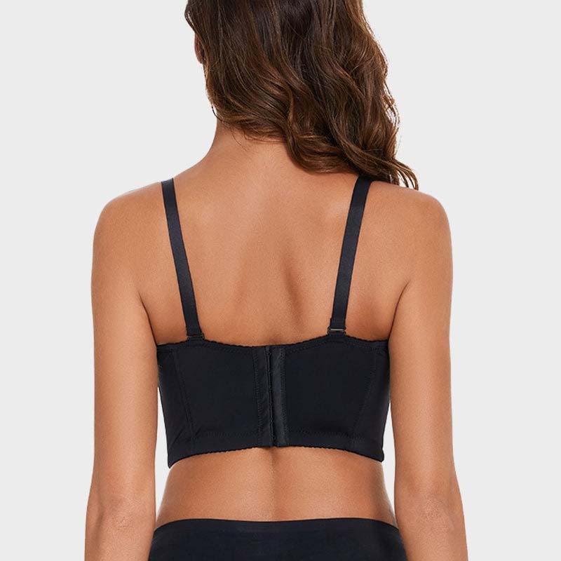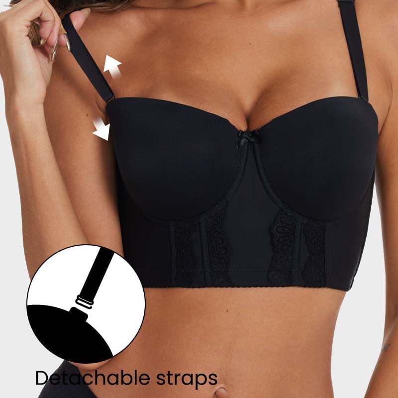 Denna viktiga axelbandslösa bustier-bh ger din silhuett en jämn finish på sidorna och baktill under alla kläder. Säg adjö till utbuktningar på ryggen och bh-linjer. Den har extremt bekväma, breda sido- och ryggband som döljer fett på ryggen och i armhålorna samtidigt som den ger måttlig täckning och maximalt stöd för bysten. De inbyggda sidostöden ger överlägsen, läckagesäker täckning av underarmarna och förhindrar inrullning. Med justerbara och avtagbara breda axelband för stressfri, glidfri komfort.