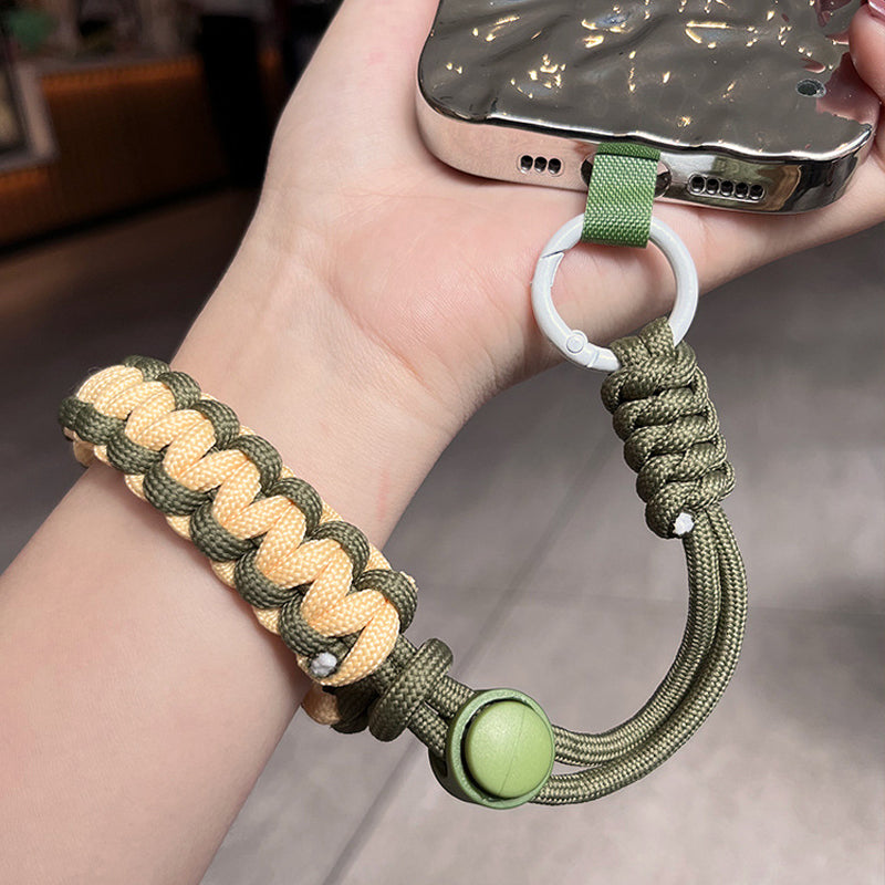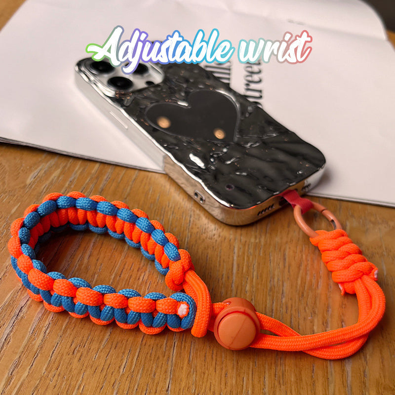 - Nyckelbandet är utrustat med ett justerbart spänne som gör att du kan anpassa passformen runt handleden och se till att det sitter säkert på plats. Det glidande ringlåset drar åt remmen, vilket minimerar risken för att tappa telefonen.👋📲