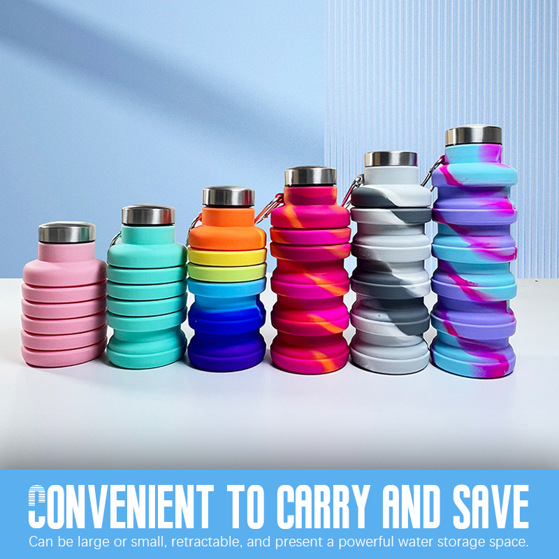 đ FĂ€llbar design: Behöver du extra utrymme? VĂ„r vattenflaska har en bekvĂ€m hopfĂ€llbar design, sĂ„ att du kan fĂ€lla ihop den nĂ€r den inte anvĂ€nds för enkel förvaring och bĂ€rbarhet. Perfekt för resor, utomhusĂ€ventyr och vardagsanvĂ€ndning.