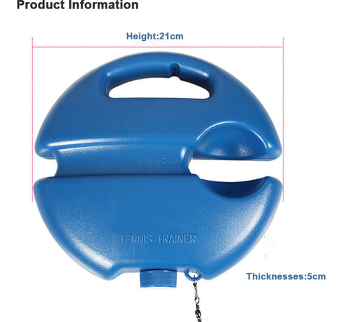Halkfri träningsbas: Basen på den ursprungliga tennistränaren är en skiva med ett halkfritt skikt på undersidan. När den placeras på marken glider den inte iväg under användning. Basen kan även användas för att förvara tennisbollar och rulla upp repet när den inte används. Allt detta gör Tennis Trainer till en kompakt enhet som är lätt att förvara.