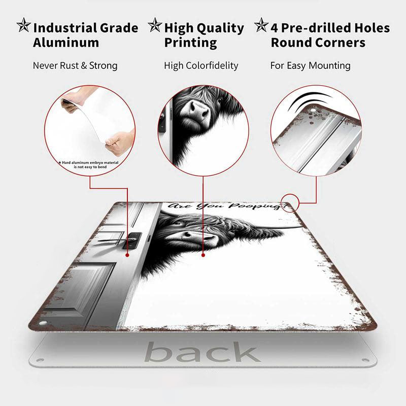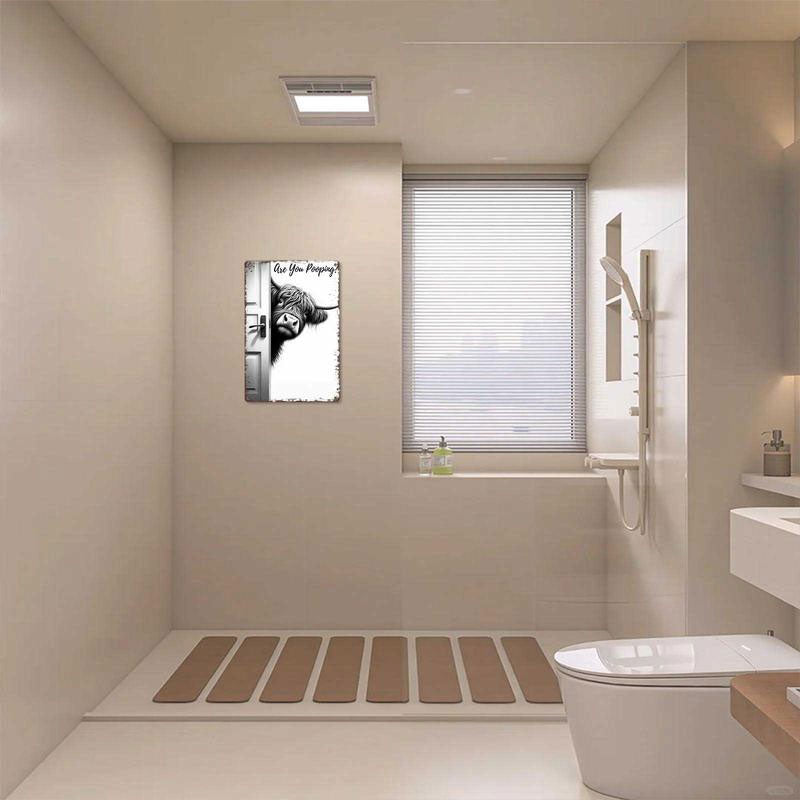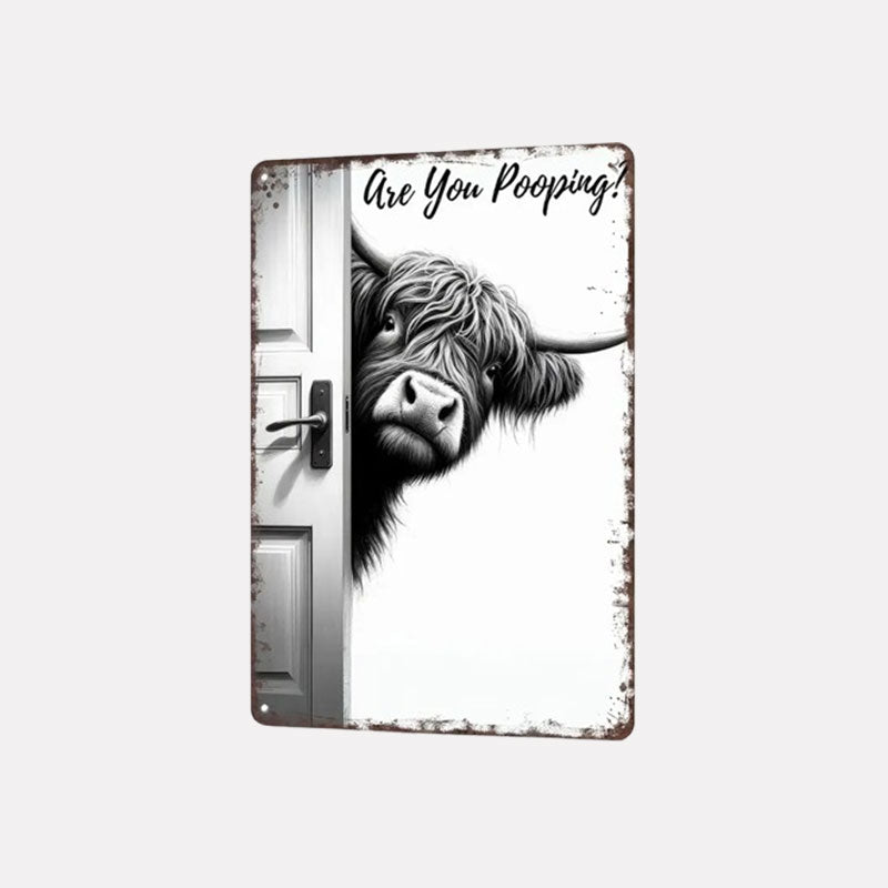 "Knack, knack! Vem Àr det?" Det Àr din nya favoritkompis i badrummet! Fyll din vardag med skratt med denna roliga vÀggdekoration. PÄ skylten syns en nyfiken höglandsko som kikar in genom dörröppningen och stÀller den djÀrva frÄgan som alla andra Àr för artiga för att stÀlla. Den perfekta blandningen av rustik charm och humor som garanterar ett leende frÄn alla gÀster.