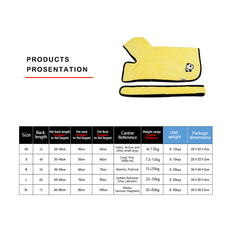 - đ¶Superabsorberande: Tillverkad av mjuk, andningsbar polyester som absorberar vatten snabbt, denna baddrĂ€kt för husdjur hjĂ€lper dig att spara mer tid pĂ„ att ta hand om ditt husdjur efter en regnig dag i bad, dusch eller promenad för att undvika att de blir kalla eller illaluktande.