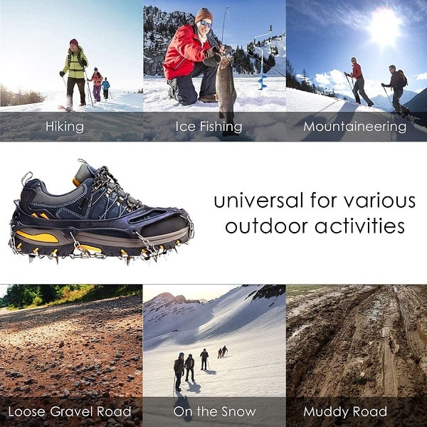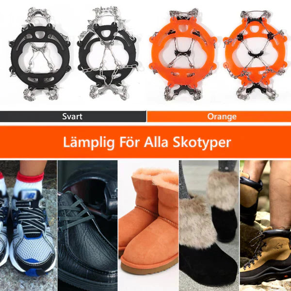 - Brett anvĂ€ndningsomrĂ„de och unisex: Kan anvĂ€ndas i sluttande terrĂ€ng, pĂ„ isiga vĂ€gar, isiga uppfarter, i lera och vĂ„tt grĂ€s, pĂ„ farliga delar av leden etc. Perfekt för terrĂ€nglöpning, vandring och isfiske.Â