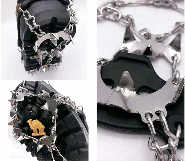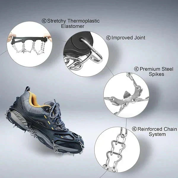 VÄra uppgraderade halkfria broddar förhindrar att du halkar och skadar dig nÀr du gÄr pÄ snö eller is och anvÀnds ofta av löpare, vandrare och vintersportentusiaster.